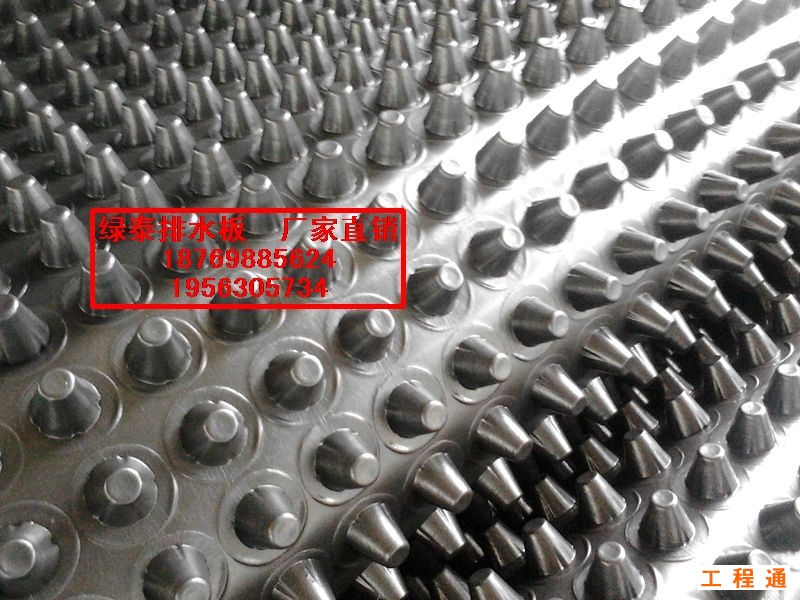 排水板簡(jiǎn)介:排水板是由聚苯乙烯(HIPS)或者是聚乙烯塑膠底板經(jīng)過沖壓制成圓錐突臺(tái)(或中空?qǐng)A柱形多孔)而成,圓錐突臺(tái)的頂面膠接一層 過濾土工布,以阻止泥土微粒通過,從而避免排水通道阻塞,使孔道排水順暢。 傳統(tǒng)的排水方式使用磚石瓦塊作為導(dǎo)濾層,使用較多的鵝卵石或碎石作為濾水 層,將水排到指定地點(diǎn)。而現(xiàn)在用排水板取代鵝卵石 濾水層來排水則省時(shí)、省力又節(jié)能、節(jié)省投資。