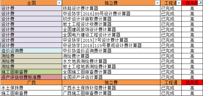 1.新增設(shè)計費、測繪費、資產(chǎn)評估費、造價咨詢費、施工圖審查費、水土保持費高優(yōu)先級計算器共計16個;