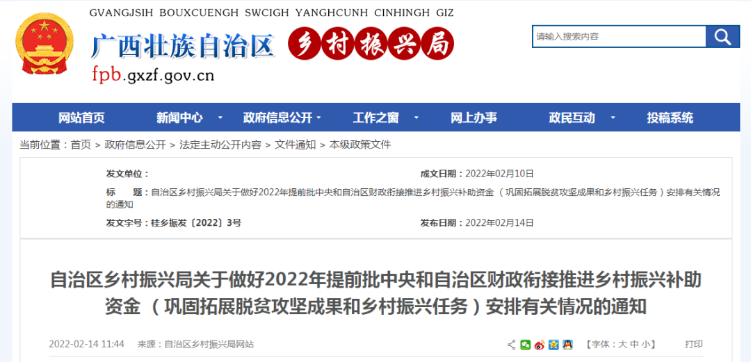 自治區鄉村振興局關于做好2022年提前批中央和自治區財政銜接推進鄉村振興補助資金 (鞏固拓展脫貧攻堅成果和鄉村振興任務)安排有關情況的通知
