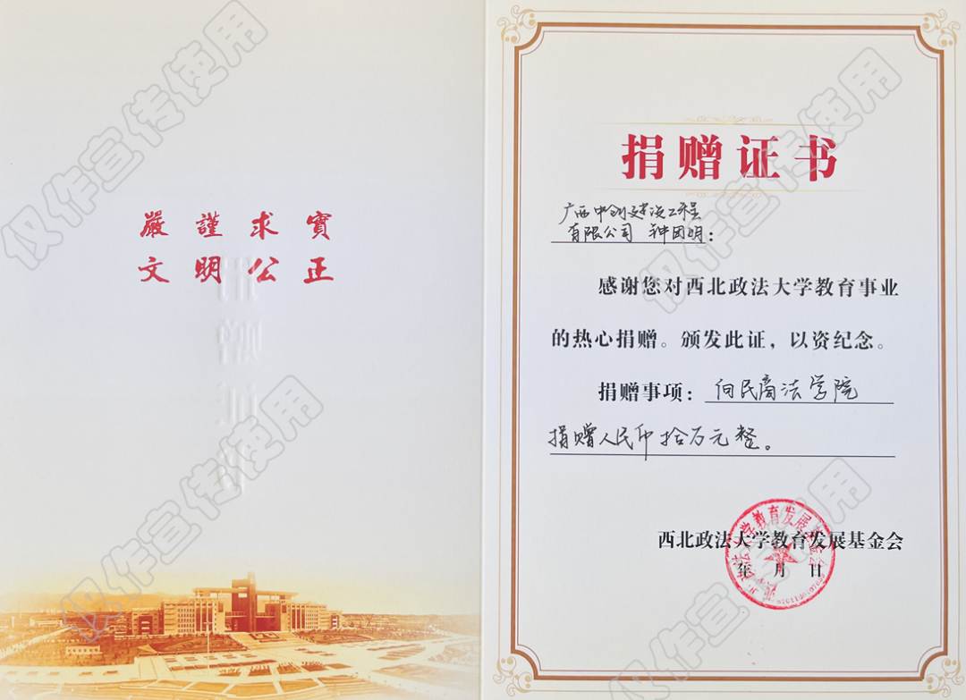 西北政法大學民商法學院2003級校友、廣西中創建設工程有限公司、廣西中創數字科技股份有限公司董事長鐘團明先生不忘母校,回饋母校,捐資10萬元支持母校民商法學院學生學術期刊《西部法苑》和學校學生社團發展建設。