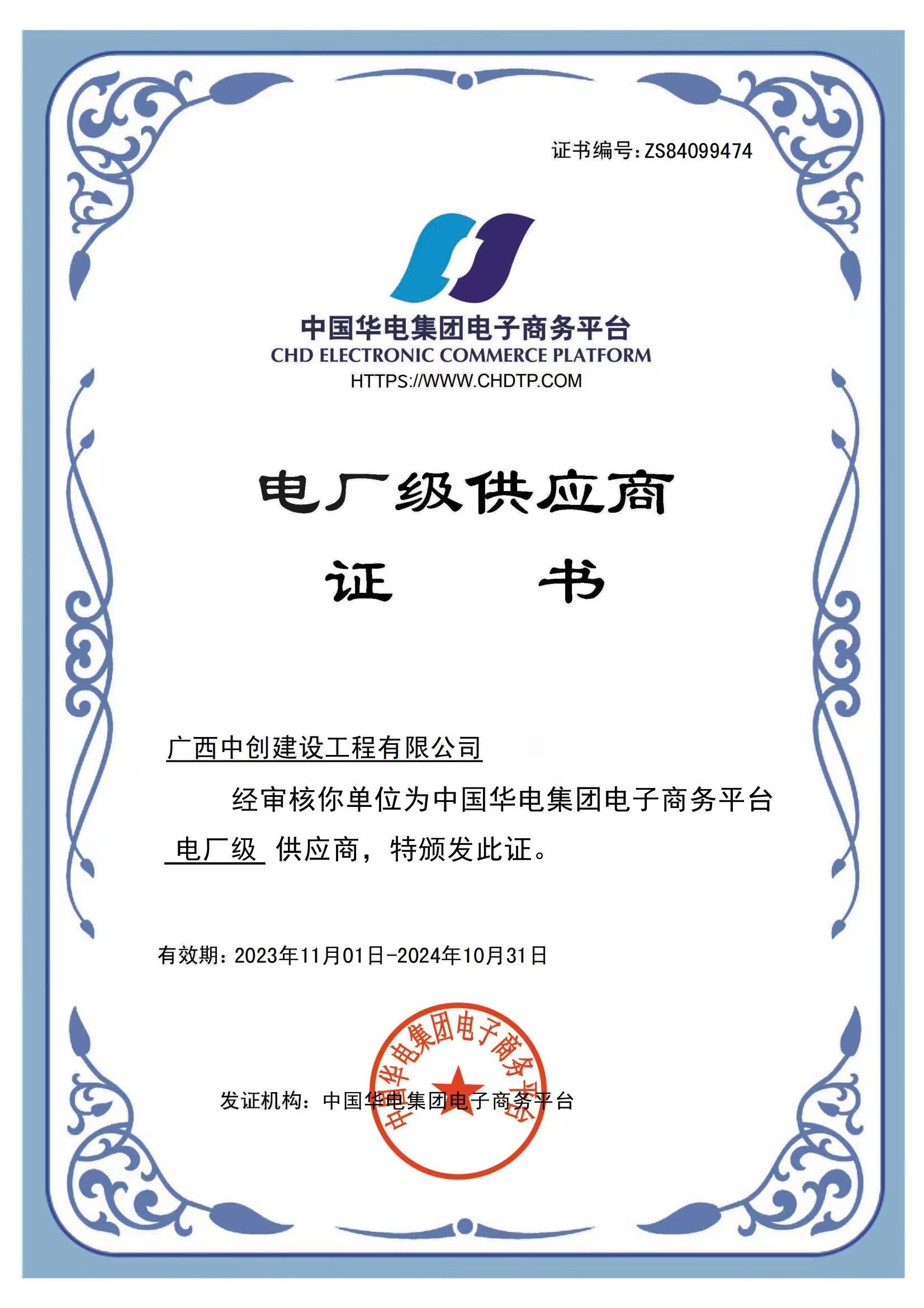 近日,廣西中創(chuàng)建設(shè)工程有限公司(以下簡(jiǎn)稱“中創(chuàng)公司”)憑借其專業(yè)實(shí)力和卓越的企業(yè)精神,正式成為中國(guó)華電集團(tuán)電子商務(wù)平臺(tái)的電廠級(jí)供應(yīng)商,并榮獲了由該平臺(tái)頒發(fā)的正式證書。